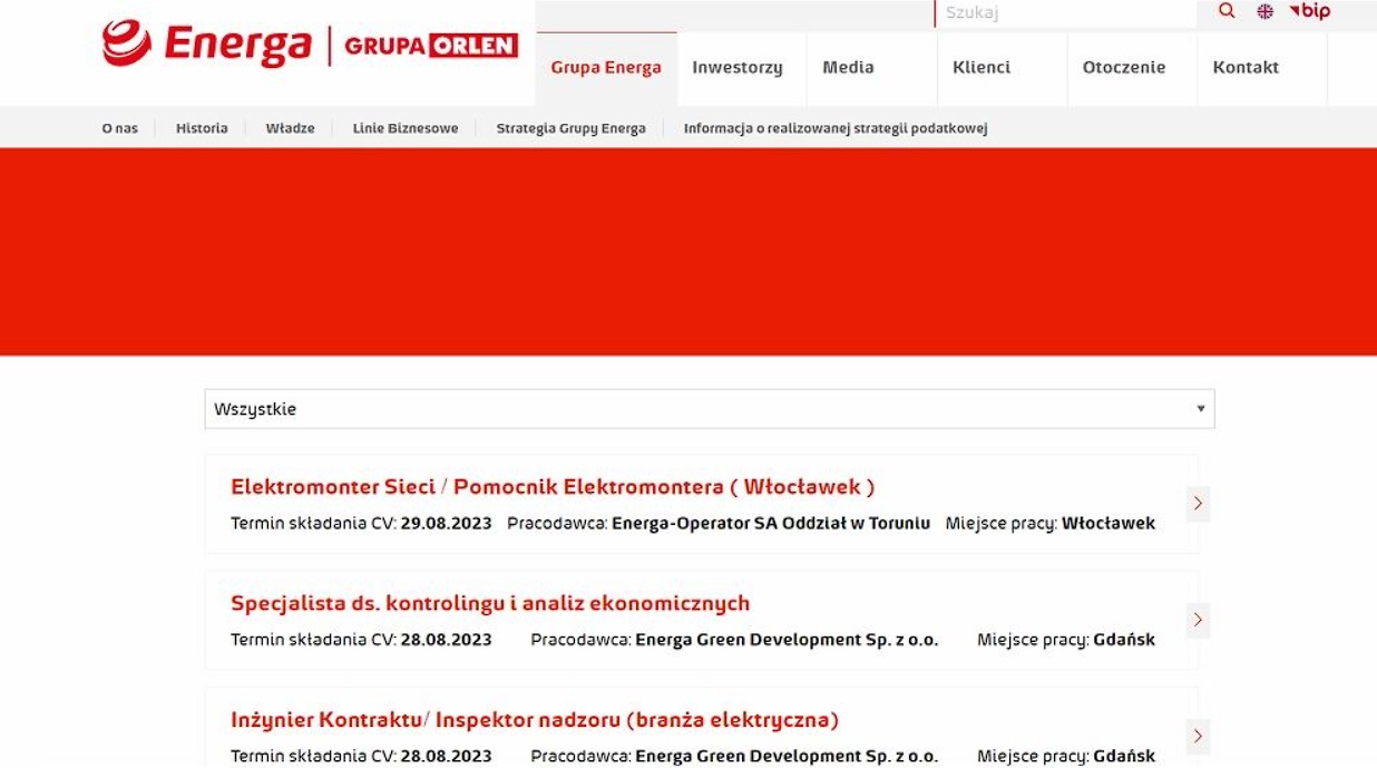 Możesz śledzić stronę internetową Grupy Energa i przejść do strony kariery. Znajdziesz tam wszystkie dostępne oferty pracy, które można sortować według kategorii. Aby aplikować na dane stanowisko, należy kliknąć na interesującą nas ofertę i zapoznać się z jej szczegółami. Następnie należy kliknąć przycisk “Aplikuj”, co spowoduje przejście do formularza zgłoszeniowego. W ciągu kilku dni otrzymasz odpowiedź z działu HR.